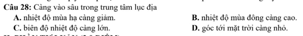 Câu `28`: Càng vào sâu trong trung tâm lục địa
