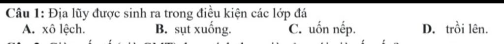 Câu `1:` Địa lũy được sinh ra trong điều kiện các lớp đá
