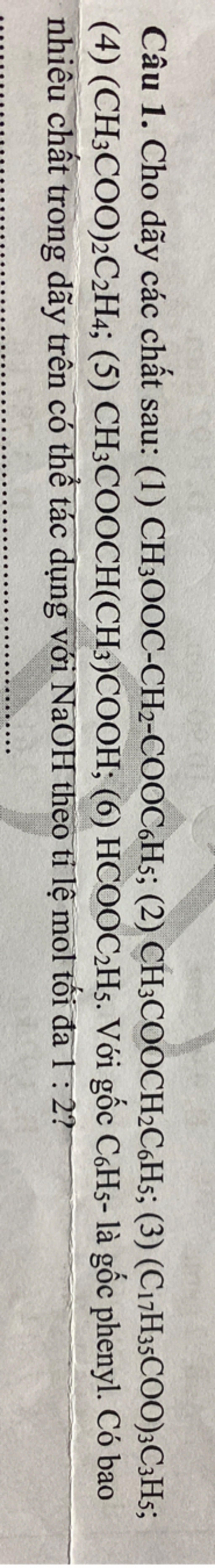 $(1)$ tác dụng theo tỉ lệ mol $1:3$ (một trong hai nhóm ester là ester phenol)