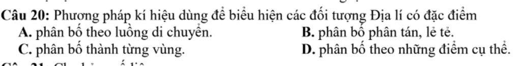 Câu 20: Phương pháp kí hiệu dùng để biểu hiện các đối tượng Địa lí có đặc điểm