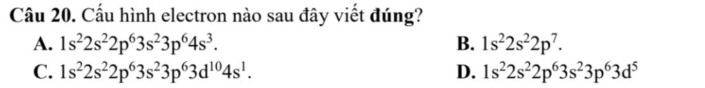 `A` sai vì số electron tối đa trong phân lớp `4s` là 2.