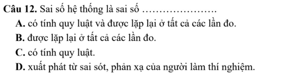 Sai số hệ thống là sai số có tính quy luật và được lặp lại ở tất cả các lần đo.