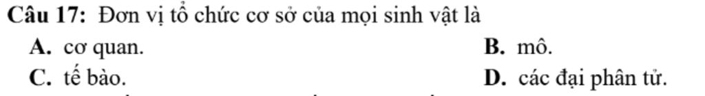 `-` Tế bào là đơn vị cấu trúc và chức năng cơ bản của tất cả các sinh vật sống.