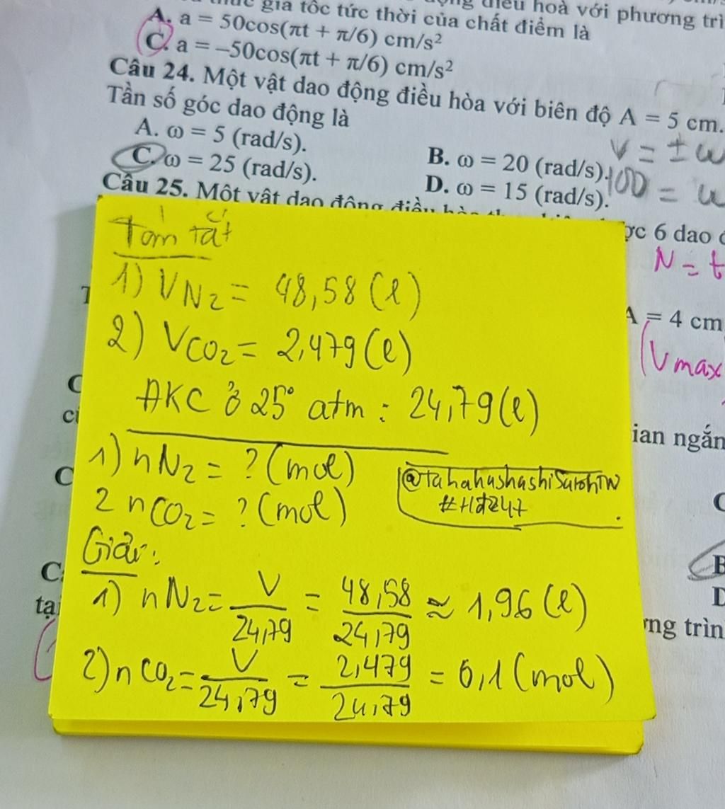a. Áp dụng công thức ta có: nN2=48,58/24,79=1,9596 mol (làm tròn là 2 mol)