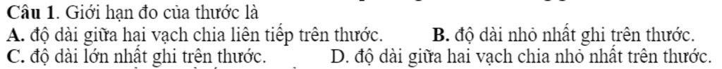 `A.` độ dài giữa hai vạch chia liên tiếp trên thước.