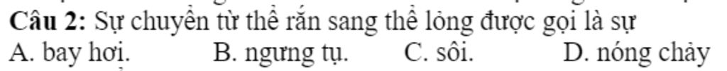 `@` Sự chuyển từ thể rắn sang thể lỏng được gọi là sự nóng chảy