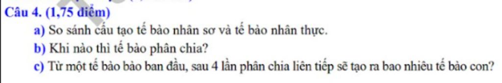 c, Từ một tế bào ban đầu, sau 4 lần phân chia liên tiếp sẽ tạo ra: 2^4=16 (tế bào)