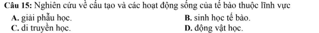 Sinh học tế bào là lĩnh vực nghiên cứu chuyên sâu về cấu trúc, chức năng và các hoạt động sống của tế bào. Nó tập trung vào các quá trình bên trong tế bào, bao gồm sinh tổng hợp, chuyển hóa, và phân chia tế bào.