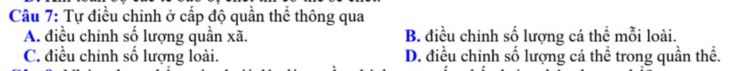 `-` Tự điều chỉnh ở cấp độ quần thể thường liên quan đến việc điều chỉnh số lượng cá thể trong quần thể để duy trì sự cân bằng và ổn định của quần thể đó.