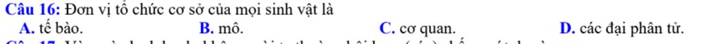 `-` Tế bào là đơn vị tổ chức cơ sở của mọi sinh vật.