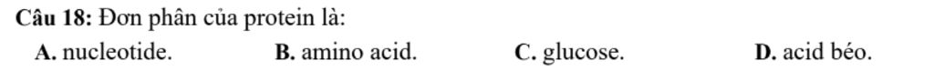 `-` Amino acid là các đơn vị cấu trúc cơ bản tạo nên protein.