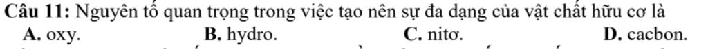 `-` Cacbon có khả năng tạo ra nhiều liên kết với các nguyên tố khác, từ đó hình thành nên nhiều loại phân tử hữu cơ khác nhau.