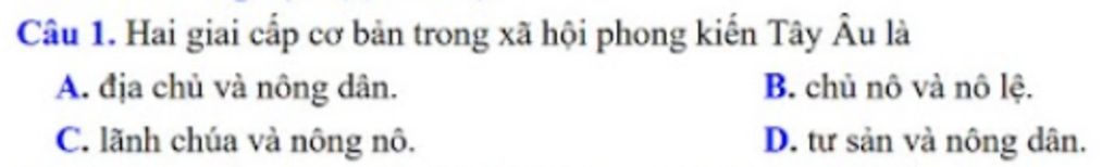 Câu `1.` Hai giai cấp cơ bản trong xã hội phong kiến Tây Âu là