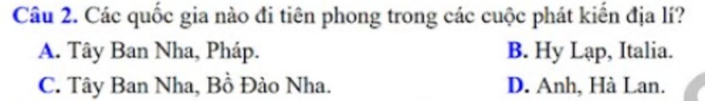 Câu `2.` Các quốc gia nào đi tiên phong trong các cuộc phát kiến địa lí`?`