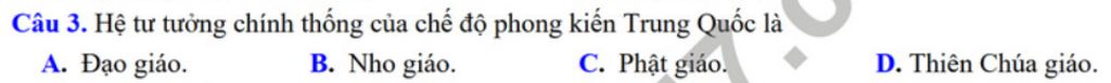 Câu `3.` Hệ tư tưởng chính thống của chế độ phong kiến Trung Quốc là