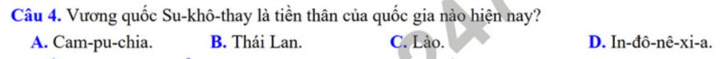 Câu `4.` Vương quốc Su`-`khô`-`thay là tiền thân của quốc gia nào hiện nay`?`