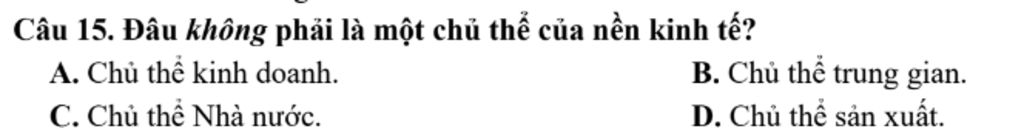 Câu `15`: Đâu không phải là một chủ thể của nền kinh tế?