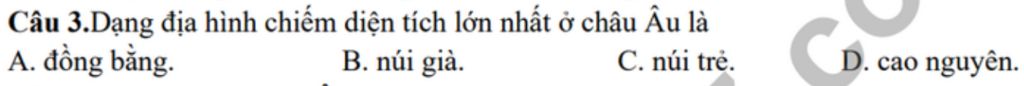 Đồng bằng là dạng địa hình chiếm diện tích lớn nhất ở Châu Âu.
