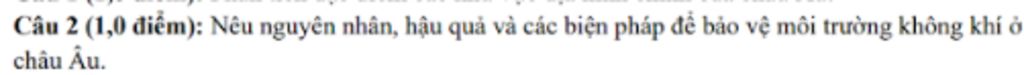 `-` Nguyên nhân: Hoạt động sản xuất công nghiệp, tiêu thụ năng lượng, vận tải đường bộ.