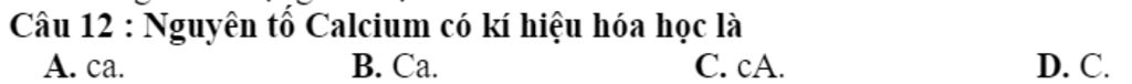 Ta có `:` Nguyên tố Calcium có ký hiệu hóa học là Ca