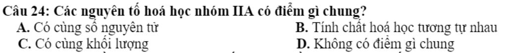Câu `24:` Các nguyên tố hoá học nhóm IIA có điểm gì chung?