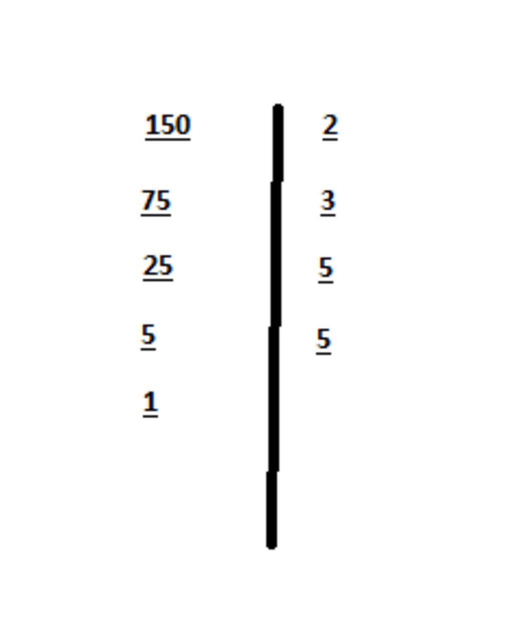 `150 = 2 . 3 . 5 . 5 = 2 . 3 . 5^2`