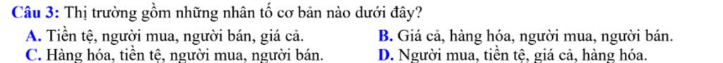 `3)` Thị trường gồm những nhân tố cơ bản nào dưới đây?