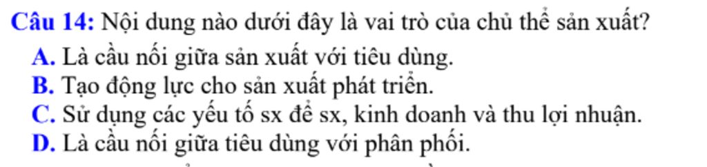`14)` Nội dung nào dưới đây là vai trò của chủ thể sản xuất?