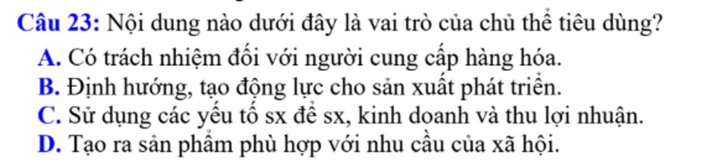 `23)` Nội dung nào dưới đây là vai trò của chủ thể tiêu dùng?