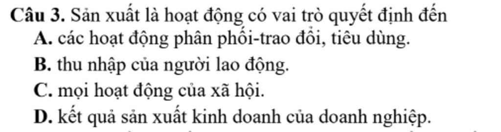 `3)` Sản xuất là hoạt động có vai trò quyết định đến