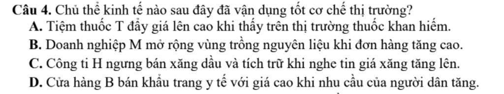 Câu `4`: Chủ thể kinh tế nào sau đây đã vận dụng tốt cơ chế thị trường?