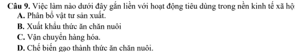 `9)` Việc làm nào dưới đây gắn liền với hoạt động tiêu dùng trong nền kinh tế xã hội?