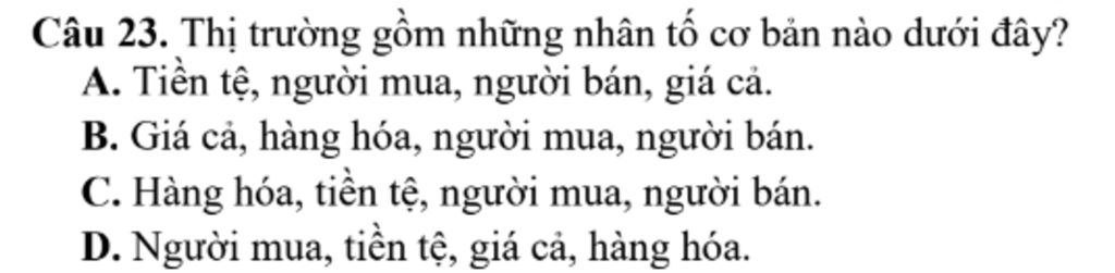 `23)` Thị trường gồm những nhân tố cơ bản nào dưới đây?