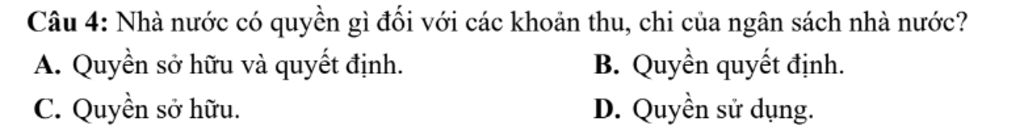 Câu `4`: Nhà nước có quyền gì đối với các khoản thu, chi của ngân sách nhà nước?