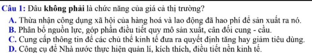 Câu 1: Đâu không phải là chức năng của giá cả thị trường?