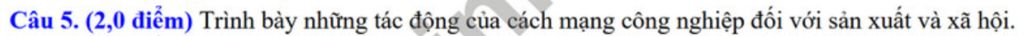 Những tác động của cách mạng công nghiệp đối với sản xuất và xã hội là : làm chuyển biến nền sản xuất nhỏ thủ công sang sản xuất lớn bằng máy móc nâng cao năng suất lao động làm ra khối lượng lớn sản phẩm cho xã hội.
