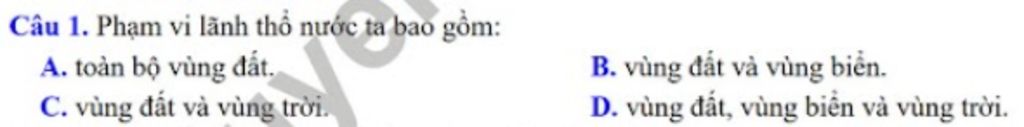 Câu `1` : Phạm vi lãnh thổ nước ta bao gồm: