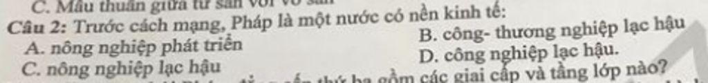 Pháp trước cách mạng tư sản là `1` nước lạc hậu, thô sơ về nông nghiệp