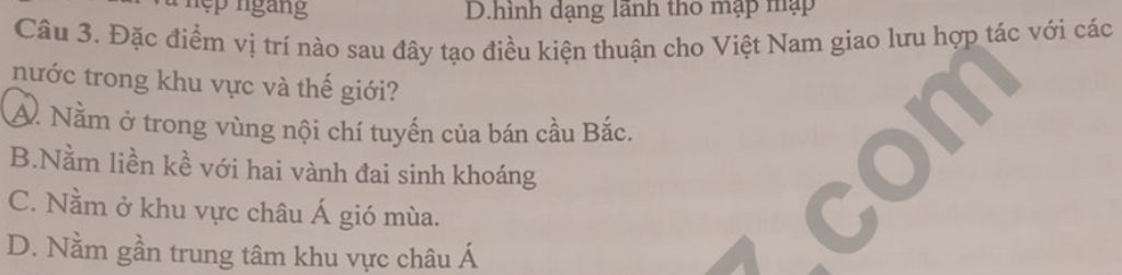 `-` Giải thích: Vị trí của Việt Nam nằm ở trung tâm khu vực Đông Nam Á, trên tuyến đường hàng hải quốc tế, giúp thuận lợi trong giao thương, hợp tác kinh tế và giao lưu văn hóa với các nước trong khu vực và trên thế giới