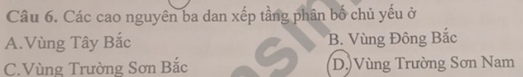 `-` Giải thích: Các cao nguyên ba dan xếp tầng chủ yếu phân bố ở vùng Trường Sơn Bắc, nơi có địa hình cao và hình thành nhiều cao nguyên, như cao nguyên Đắk Lắk và cao nguyên Lâm Viên.