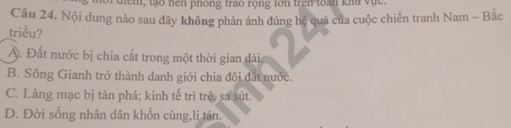 `A.` Đất nước bị chia cắt trong một thời gian dài.