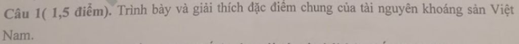 - Yêu cầu số 1: Đặc điểm chung của tài nguyên khoáng sản Việt Nam: