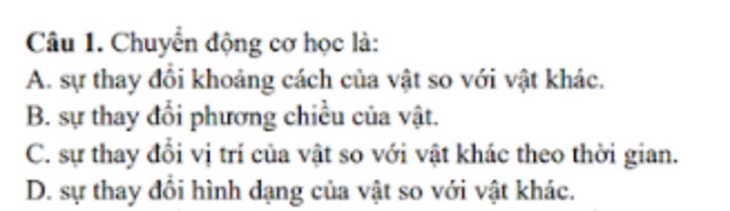 `=>` `A.` sự thay đổi khoảng cách của vật so với vật khác.