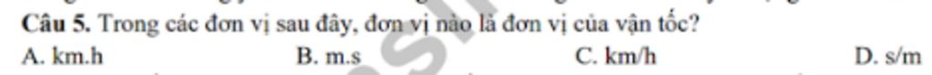 `bb B:`Sai vì đơn vị là `m // s` chứ không phải là `m.s`