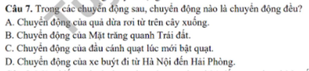 Câu `7.` Trong các chuyển động sau, chuyển động nào là chuyển động đều`?`