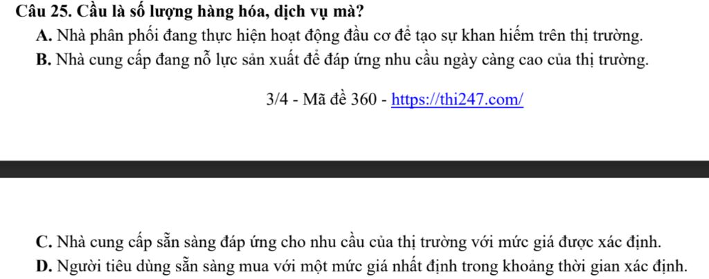 Câu 25. Cầu là số lượng hàng hóa, dịch vụ mà?