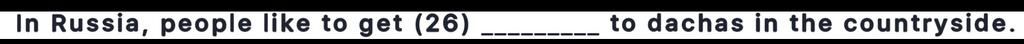 Đáp án:In Russia, people like to get away to dachas in the countryside.