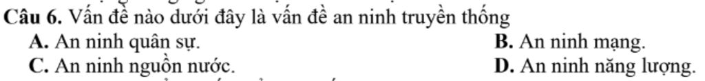 Câu `6` Vấn đề nào dưới đây là vấn đề an ninh truyền thống