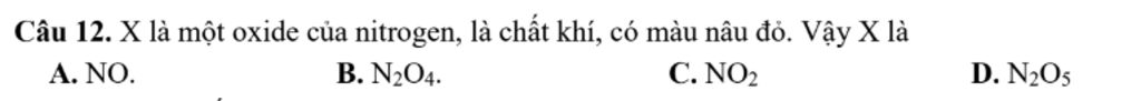 `->` Chất khí có màu nâu đỏ là $\rm NO_2$