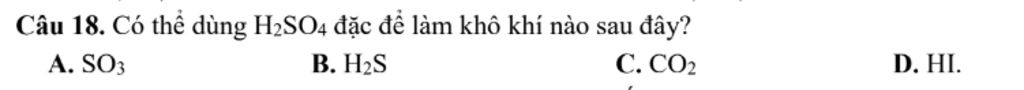 `H_2SO_4` đặc có khả năng hút ẩm và làm khô khí, đặc biệt là các khí như `SO_3`, vì `SO_3` có thể phản ứng với nước để tạo thành `H_2SO_4`